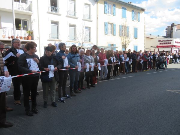 Après la pose d’une plaque, le dépôt d’une gerbe par les organisateurs, et aussi de fleurs par des participants, une chaîne humaine s’est mise en place le long de ce qui fut la position de la grue par terre, à travers le boulevard.