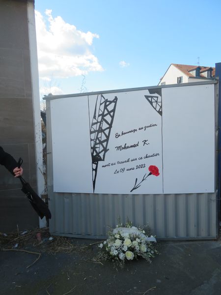Entre 100 et 120 personnes ont participé ce midi (9 mars 2023) à Bayonne Saint-Esprit à un hommage à Mohamed Kichouhi, grutier décédé il y a juste un an dans l’effondrement d’une grue.