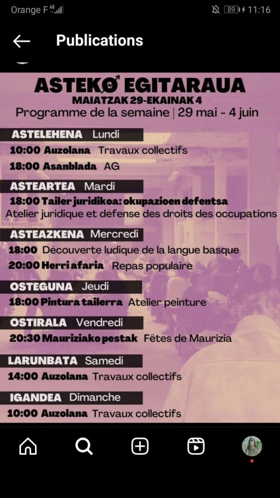 En même temps, le squat s’installe dans la durée, avec un programme copieux. Le lieu avait été investi le 4 mai, puis rendu public le 16 mai. L’EPFL, propriétaire au nom de l’Agglo, avait immédiatement engagé la procédure d’expulsion.