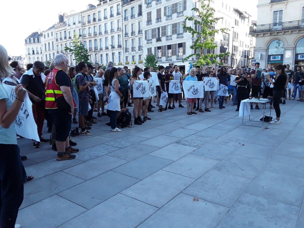 En fin d’après midi, près de 300 personnes se sont réunies devant la mairie de Bayonne pour dénoncer l’intervention policière et apporter leur soutien au collectif « Maurizia ». Lequel n’a pas l’intention d’en rester là, avec leurs nombreux soutiens
