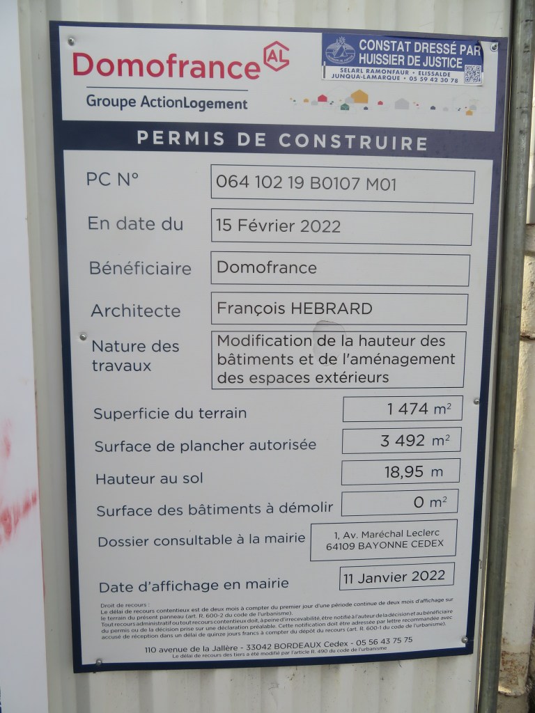 – Cette modification est adoptée le 9/11/19 par le Conseil de la CAPB, et le PC déposé conjointement par le COL et Domofrance dans la foulée le 6/12/19. L’immeuble Zubi Mayou avait été défini bien avant ce dépôt.