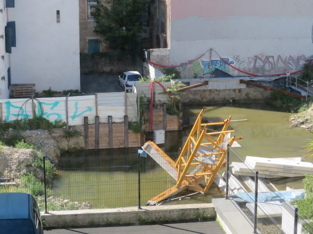 Le terrain du chantier, proche de l’Adour, a la particularité d’être inondé en permanence, avant même la tentative d’installation de la grue. Aujourd’hui, c’est une mare aux canards, et aux poissons rouges. Le Collectif demande les expertises de sols, préalables aux travaux, ainsi que celle réalisée quelques mois après l’accident, sans les obtenir.