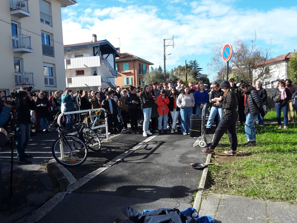 Un rassemblement s’est tenu à midi devant le commissariat de Bayonne, à l’appel de Lurzaindia, ELB et Ostia pour demander la libération des personnes arrêtées. Près de 150 personnes y ont participé, dont de nombreux élèves venus du lycée Etxepare, où enseigne l’un des gardés à vue.