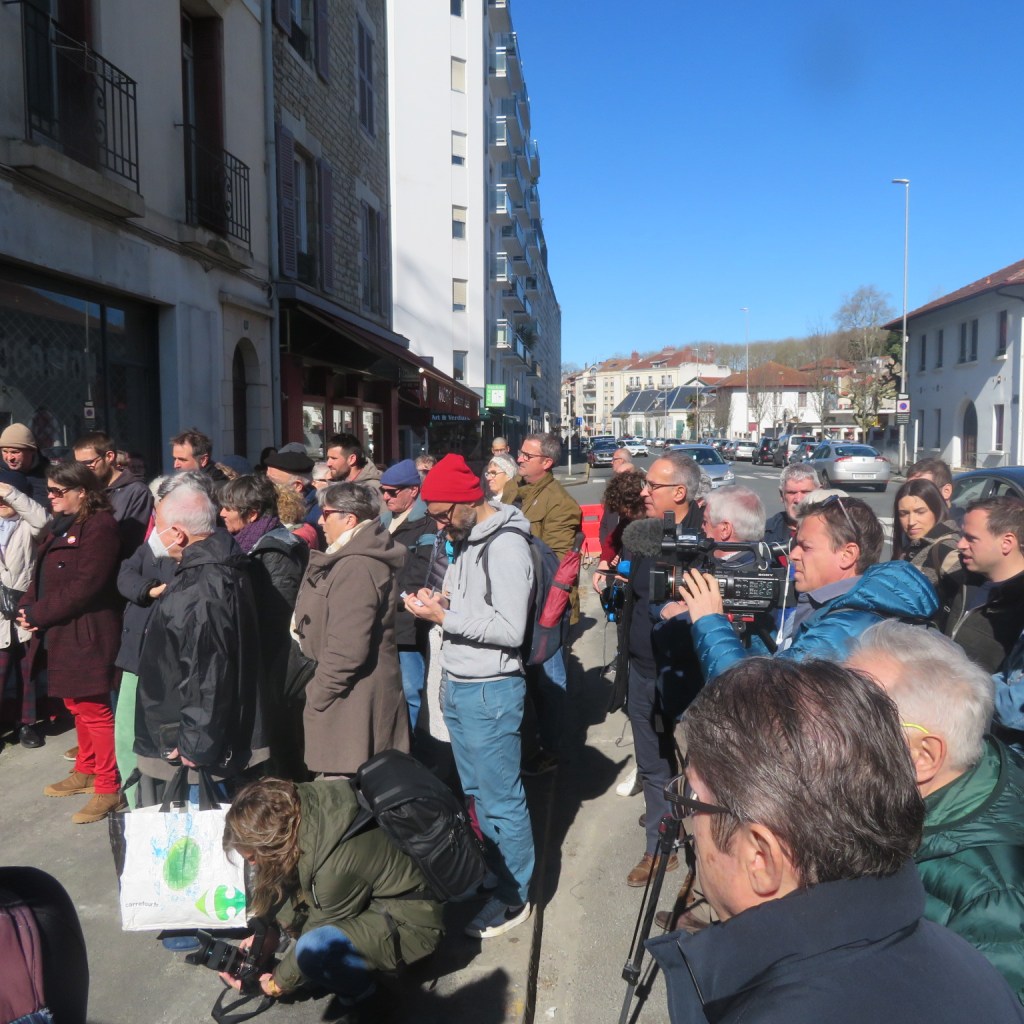 Une soixantaine de personnes ont participé à l’hommage ce matin : syndicalistes, membres du collectif, habitants du quartier, famille et amis de Mohamed Kichouhi, membres de l’association Âge et Partage 64 (futurs propriétaires). En distribuant de flyers d’invitation pour le rassemblement, le collectif avait pu constater combien cet accident mortel restait présent dans la mémoire du quartier. Aucun.e représentant.e de la mairie. Le directeur du COL était présent.