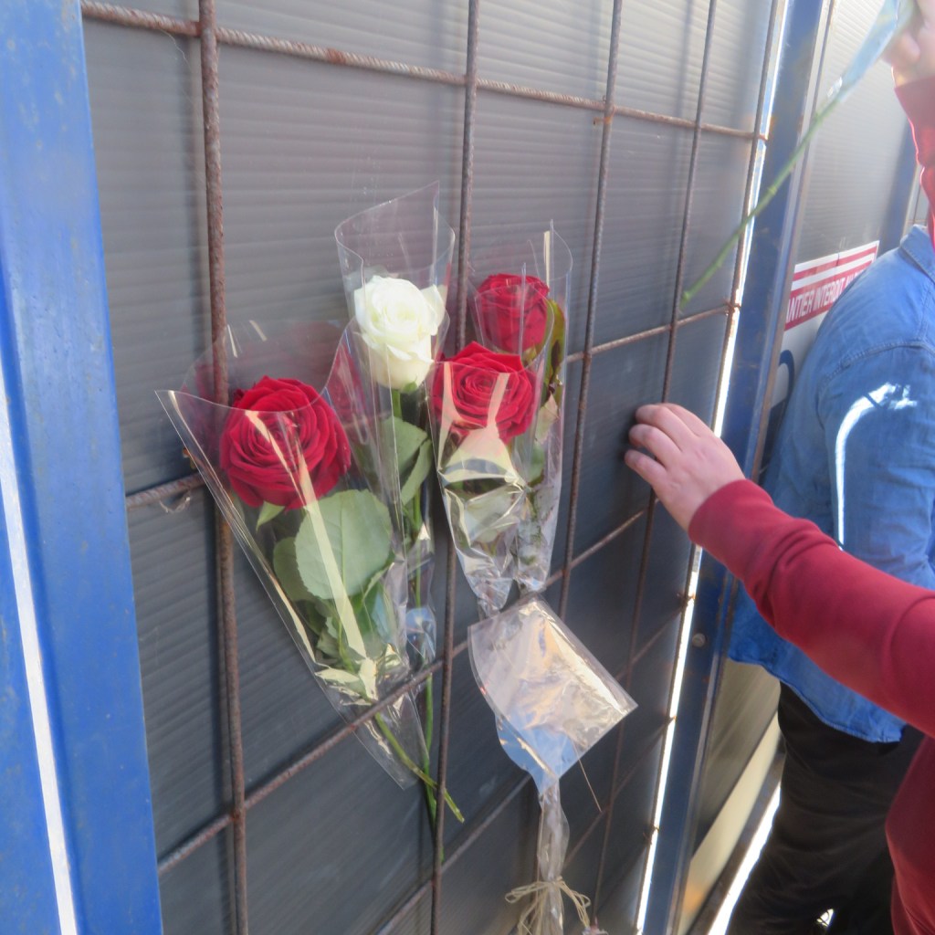 Les ouvriers et leur chef ont dit : « nous ne l’enlèverons pas ». Fanée, elle est toujours là. D’autres roses ont été accrochées par la famille, les syndicats, le collectif et des participants.