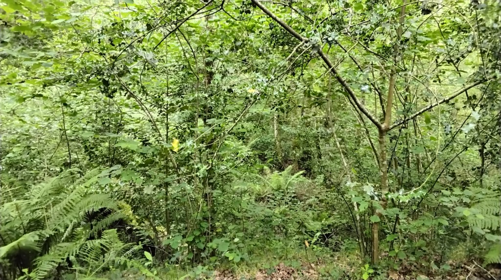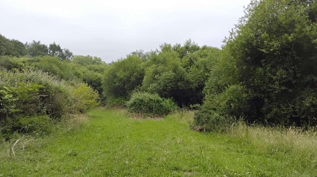 Direction vers le sud-est. On commence par prendre une sorte de chemin le long de cette maison, qui part vers la partie la plus boisée, jusqu’à la lisière.