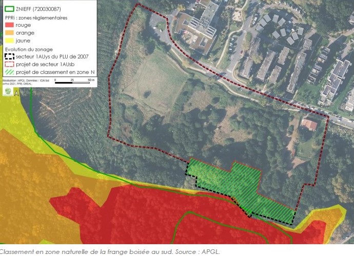 Selon le rapport de présentation du projet (p.75), le périmètre à urbaniser représentait 5,16 ha. Il va diminuer de 12 % : 0,62 ha de zone naturelle. Il reste 4,54 ha à urbaniser.