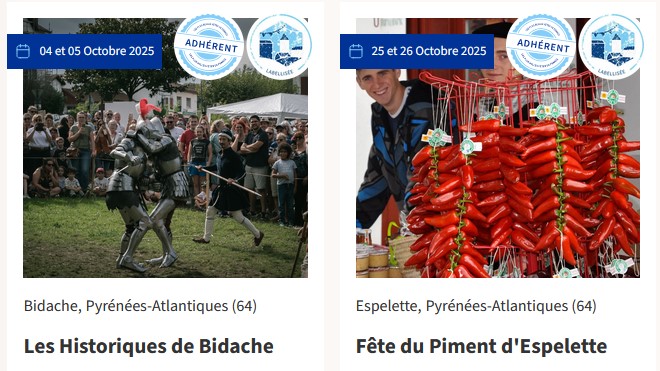 Pour Espelette : le label est à l’origine du démarchage de la fête du piment. On leur a promis une adhésion gratuite, la réduction des droits à verser à la SACEM, une subvention de 2 000 euros, incluant un reportage photo et video pour 1200 euros, et la mention dans un futur guide Michelin des fêtes. In fine, le maire d’Espelette reconnaît un certain malaise : « ça ne me plaît pas du tout ».