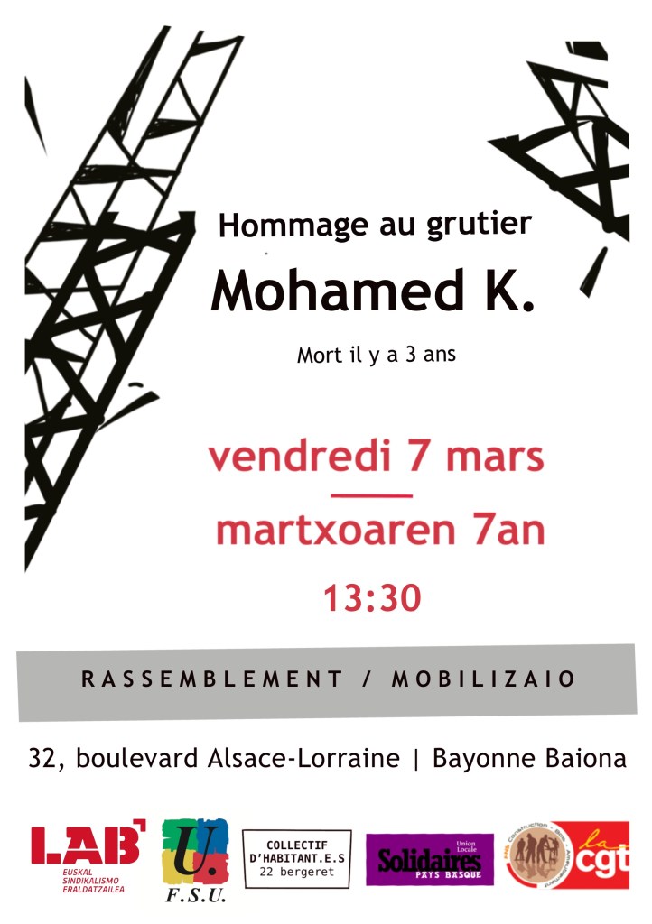 Nous avons informé les autorités municipales et les maîtres d’ouvrage de l’organisation de cet hommage et de notre volonté que la mort de Mohamed Kichouhi ne soit pas effacée.
